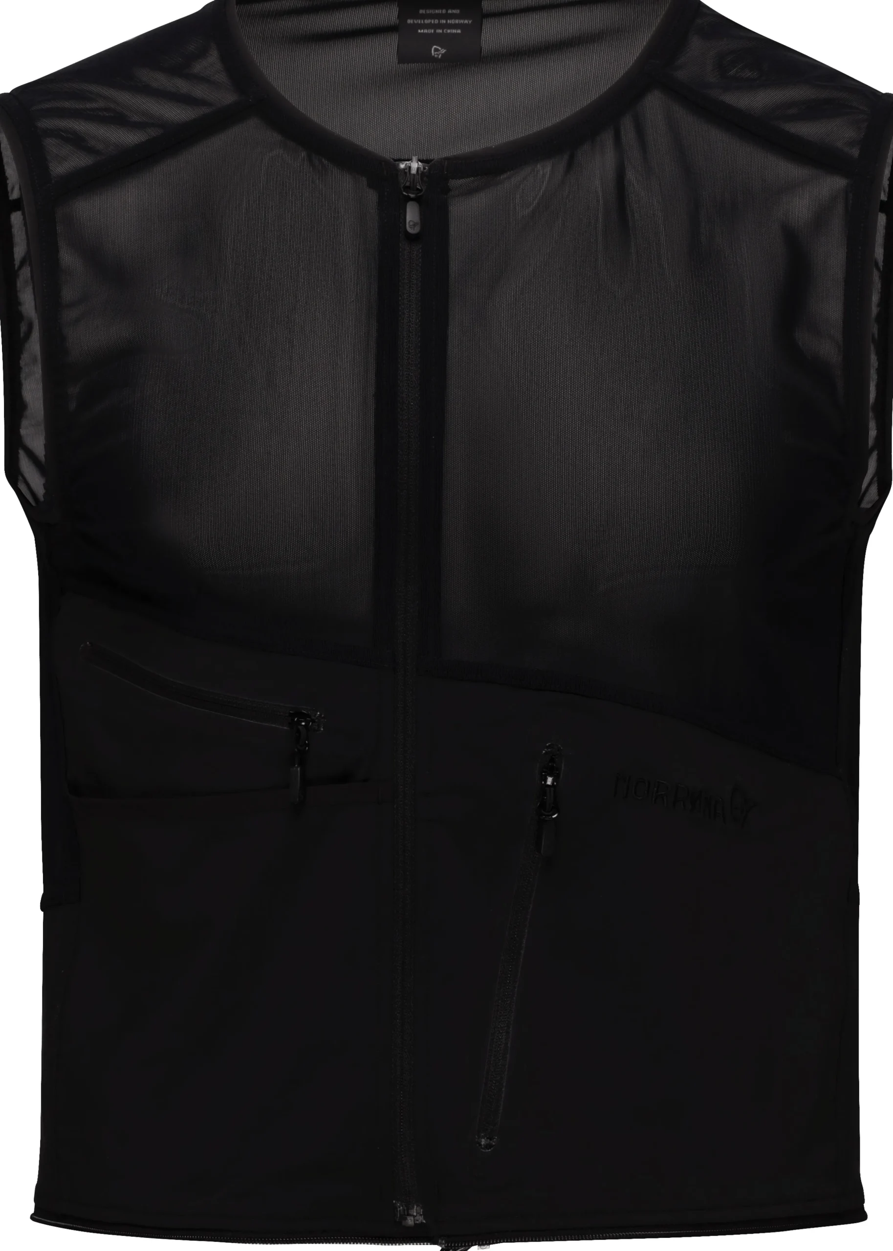 Vi bruker et slitesterkt flex1 stretchstoff for denne vesten fordi den gir fleksibilitet i størrelse, holdbarhet, pusteevne, beskyttelse mot snø og vind. Vi bruker også et sterkt åpent mesh på overdelen for å fremme en kjølende luftsirkulasjon og forbedre produktets pusteevne.