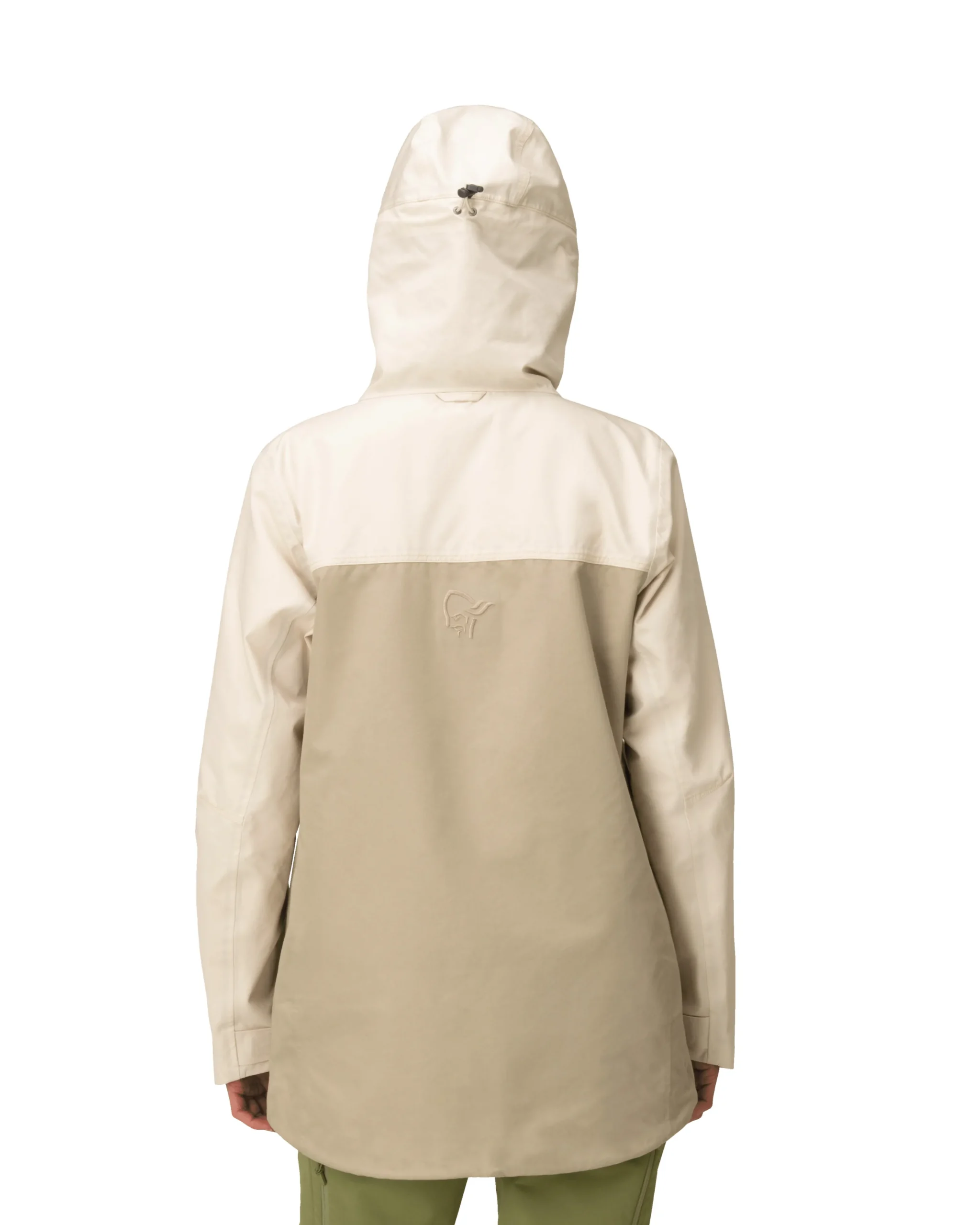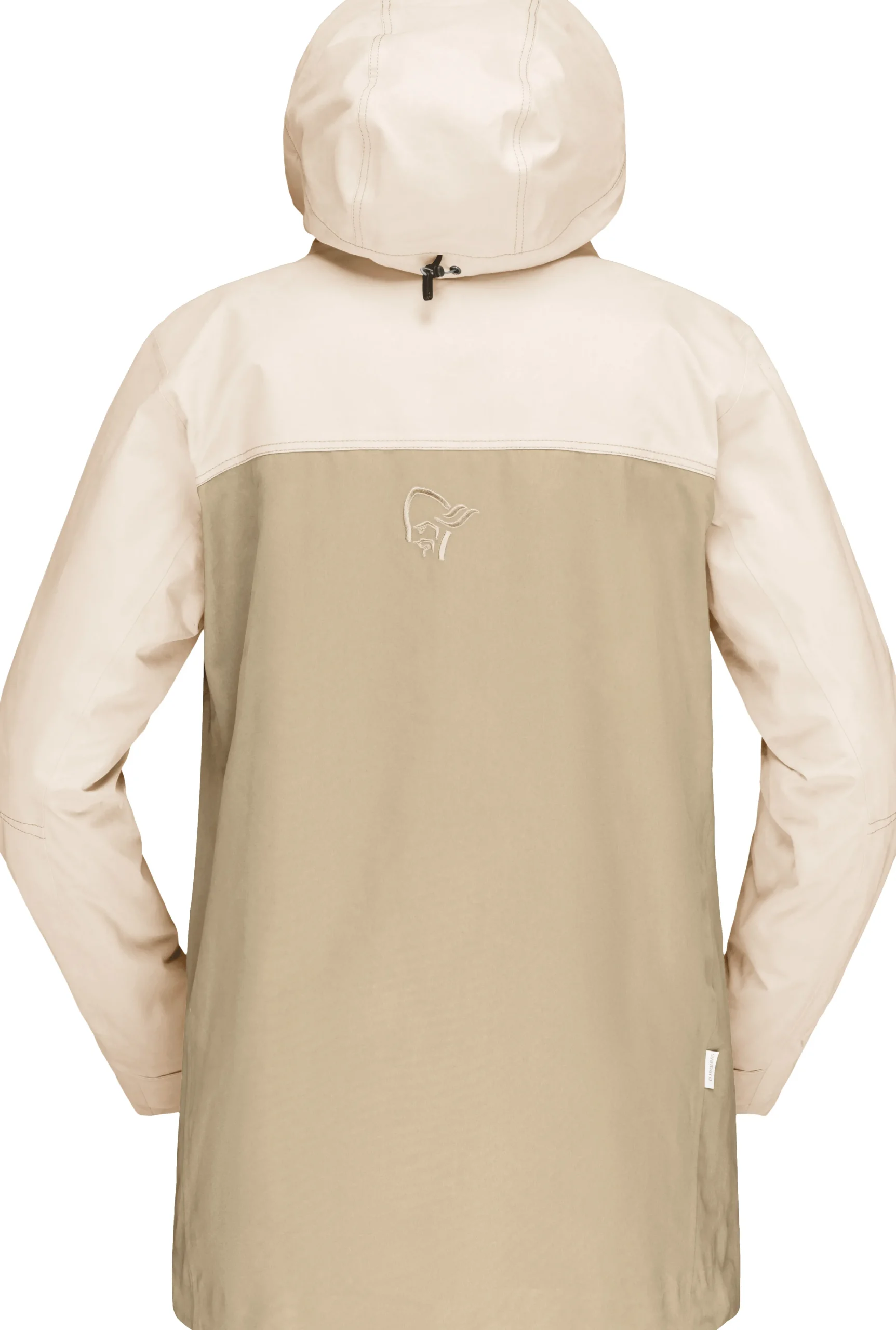 Stoffet er en vevd mellomvektsblanding (200 g/m2) av 75 % økologisk bomull og 25 % resirkulert polyester. Det gir en perfekt balanse mellom håndfølelse, slitestyrke, vindmotstand og får en fin patina ved bruk. Den resirkulerte polyesteren av høy kvalitet gjør stoffet lettere, slitesterkt og tørker raskere. I tillegg har det en PFC-fri DWR for forbedret vannavstøting.