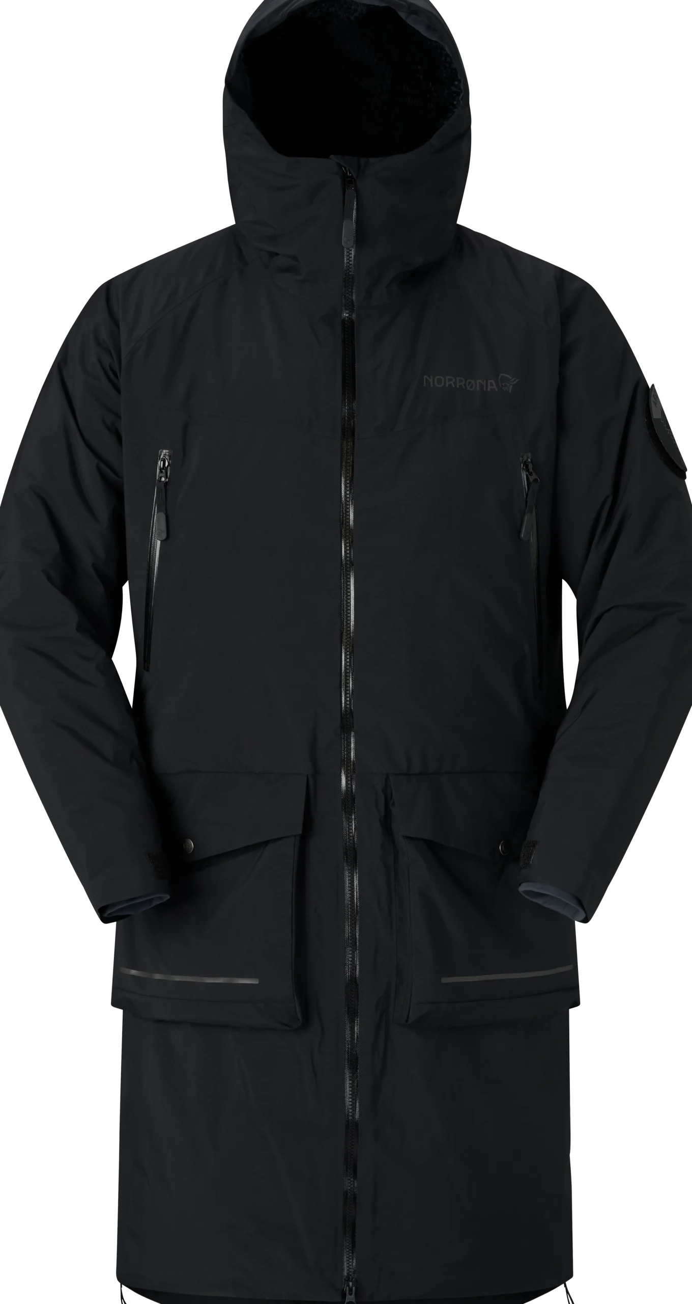 Viktige funksjoner inkluderer: Isolert hette, lue-kompatibel, toveis glidelås foran, store lommer til å varme hendene i, innerlommer til lue/hette/hansker, en vanntett lomme, skjult lomme til oppbevaring av verdisaker og et praktisk design som gjør det enkelt å både kle av og på seg mens du bruker produktet.
