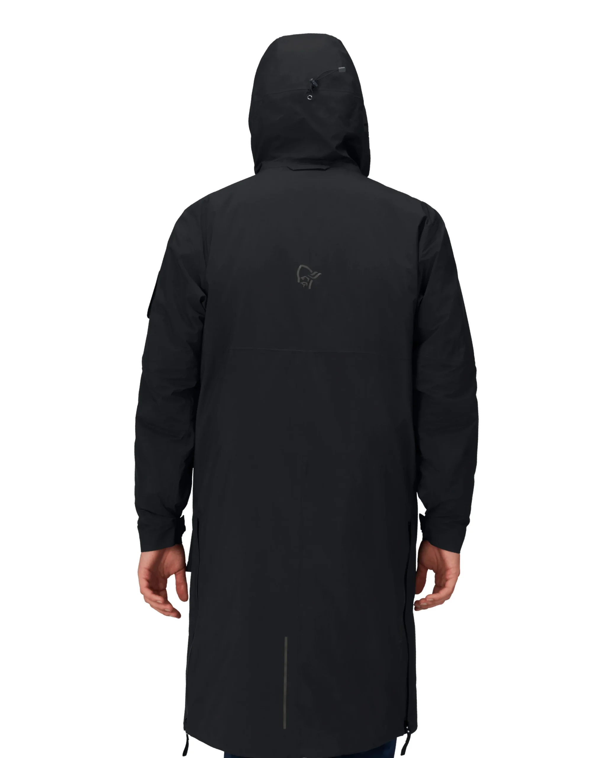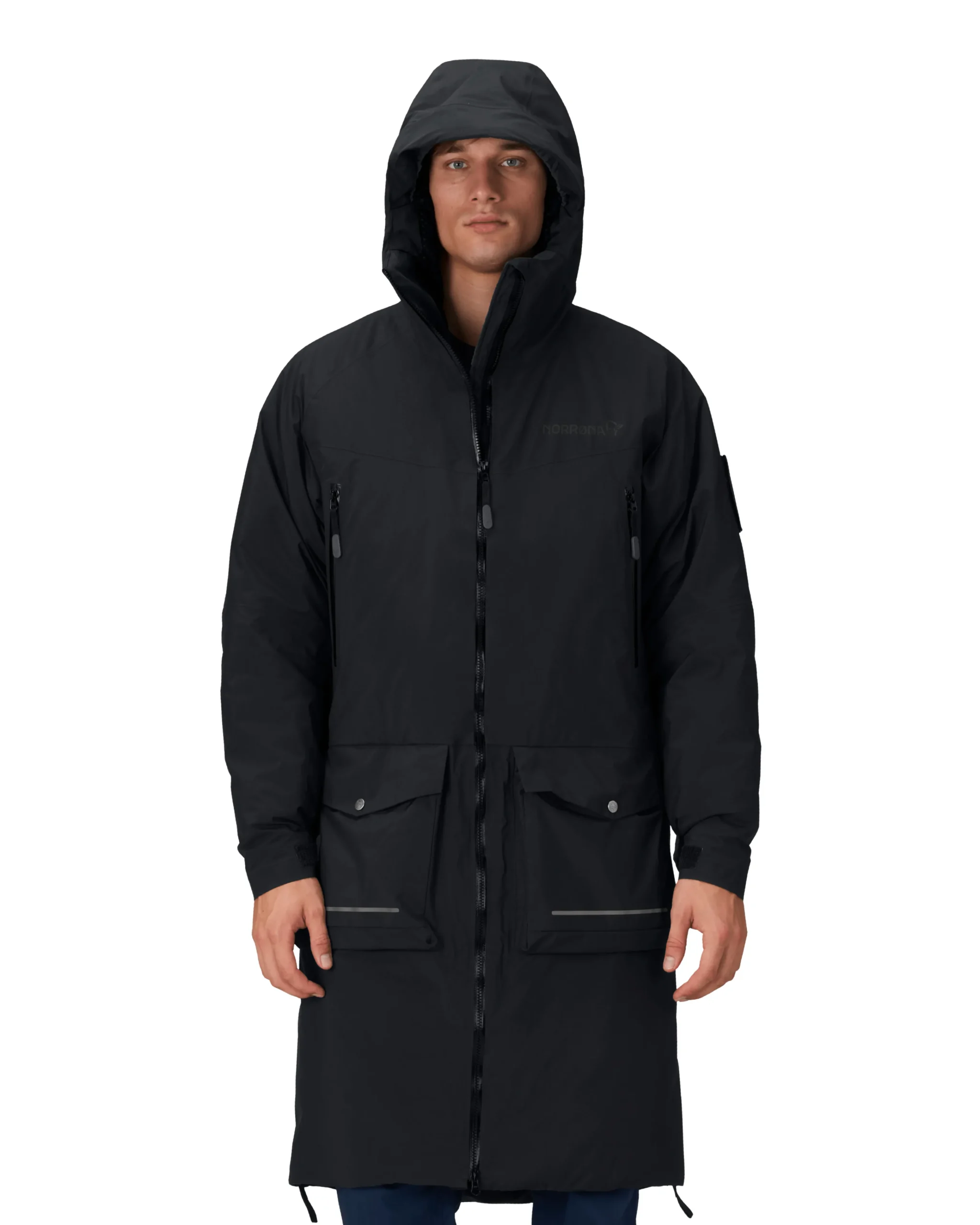 Hovedstoffet er et 2-lags ePE-vevd GORE-TEX® med en overflate av 100 % resirkulert nylon, 97 g/m2. Thermo140-isolasjonen som brukes på overkroppen og ermene, er 100 % resirkulert polyester, 140 g/m2. På underkroppen er det thermo120, 120 g/m2. På hetten er det thermo100, 100 g/m2. Fôret er av 20D 100 % nylon, 60 g/m2.